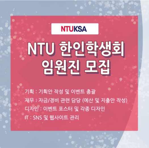 📢 NTU 한인학생회 임원진 모집 📢